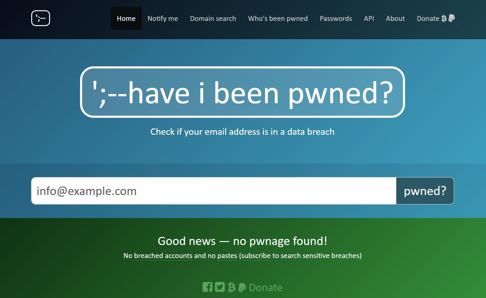 海外のウェブサービス「Have I Been Pwned」を利用することで、情報流出の確認をする。