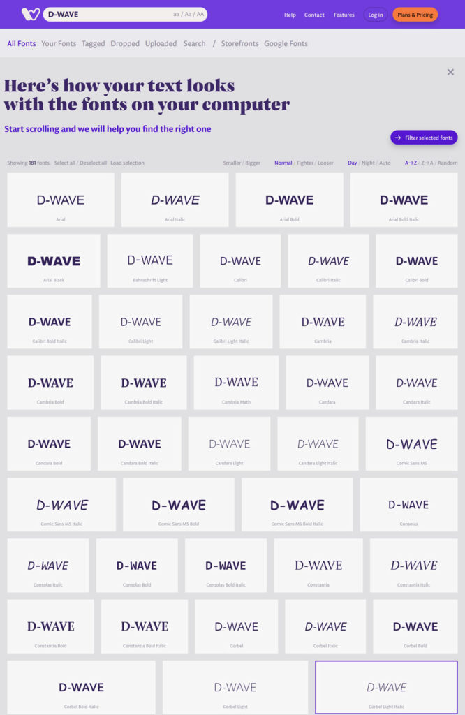 2025年10月10日 / 最終更新日時 : 2025年10月10日 NKMR サポート 自分のパソコンの中の文字フォントをプレビュー一覧表示で確認する方法 フォントをページでプレビュー表示確認【 wordmark 】 # WEBページを開いてお好みの文字を入力すれば、自分のパソコンの中のフォントでプレビュー表示 wordmark.it